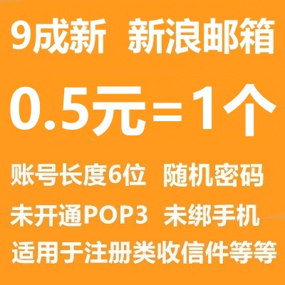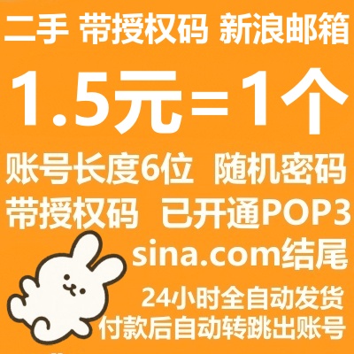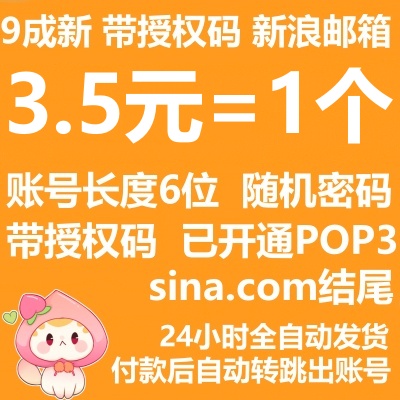 二手带授权码已开通POP3新浪邮箱----已经激活/账号长度6位/随机密码/未绑手机/com结尾