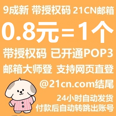 带授权码已开通POP3/9成新21CN邮箱----随机密码/支持邮箱大师直登/支持网页登/已绑手机/21cn.com结尾