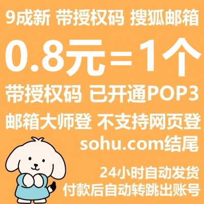 带授权码已开通POP3/9成新搜狐邮箱----随机密码/支持邮箱大师直登/不支持网页登/不带邮箱密码/已绑手机/sohu.com结尾