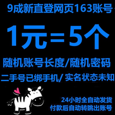 9成新/无风险网页直登/网易163邮箱----账号随机长度/密码随机长度/绑手机/防沉迷未知状态/未开通POP3