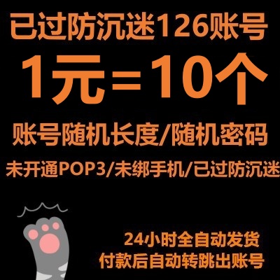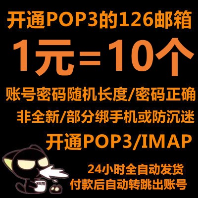 开通POP3---做过部分业务/二手号/部分绑定手机126邮箱/开通pop3/未过防沉迷/随机长度/1元=10个